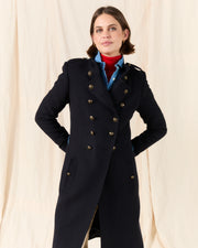 Now part of our permanent collection this classic design cut from dark blue British cloth and adorned with MOLOH signature brass buttons, this coat will be the one you reach for time and time again whatever the occasion. Perfect with jeans and plimsolls.