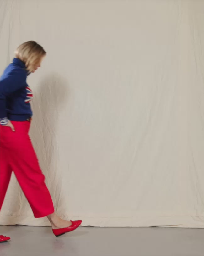 Made by hand in Scotland a Union flag motif has been added to the front of our popular MOLOH neck jumper, which has a looser and more generous shape than the standard MOLOH neck.